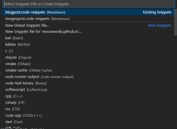 어차피 나는 VS code로 md파일을 작성하기에, VS Code가 지원하는 스니펫 기능을 활용할 수 있을 것이라는 생각이 들었다.